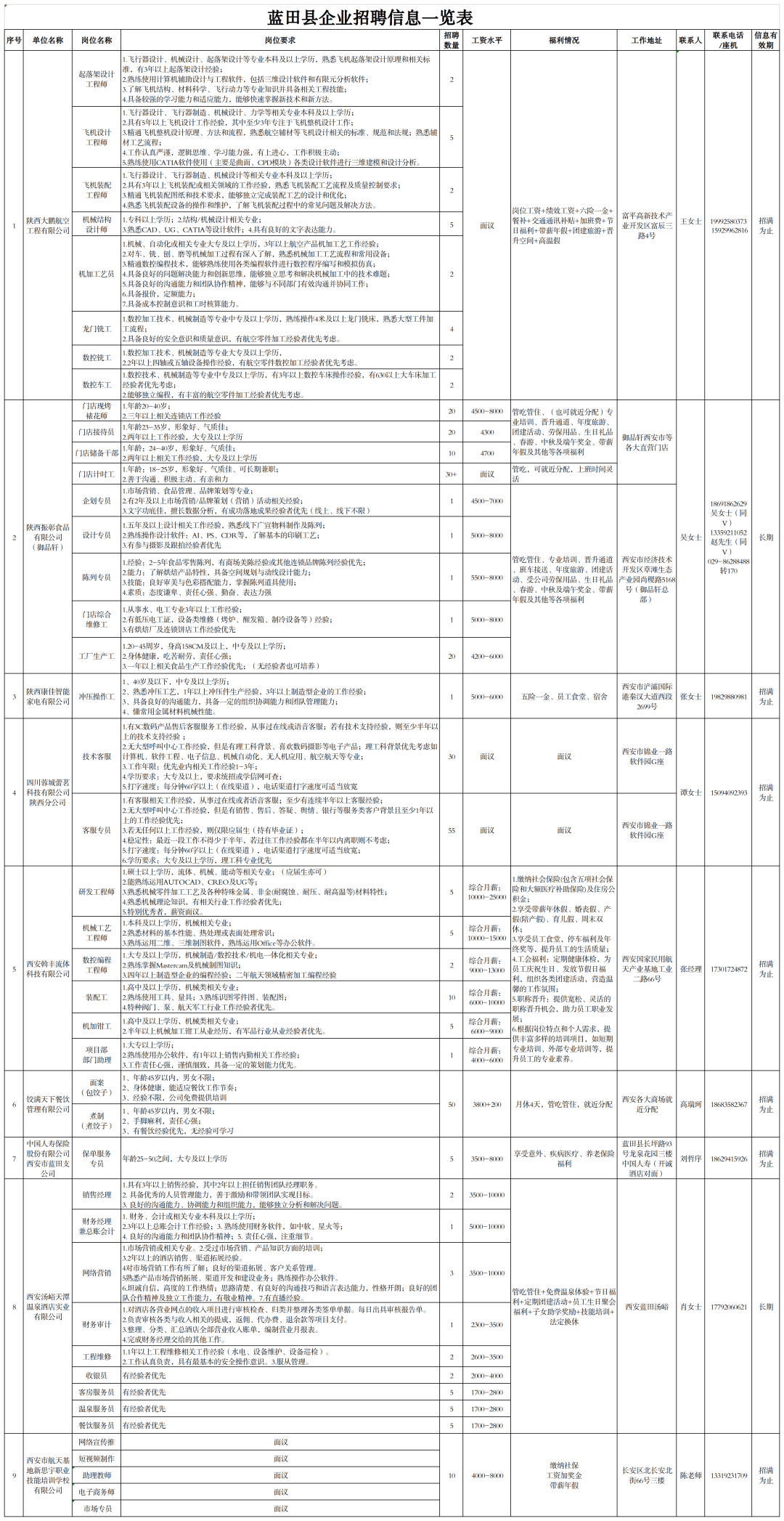 要求:男女不限,45岁以下,工作认真细心,责任心强,有良好的职业操守,语言文字表达能力和沟通能力,必须适应加班,个别岗位有夜班。地址:杨凌示范区